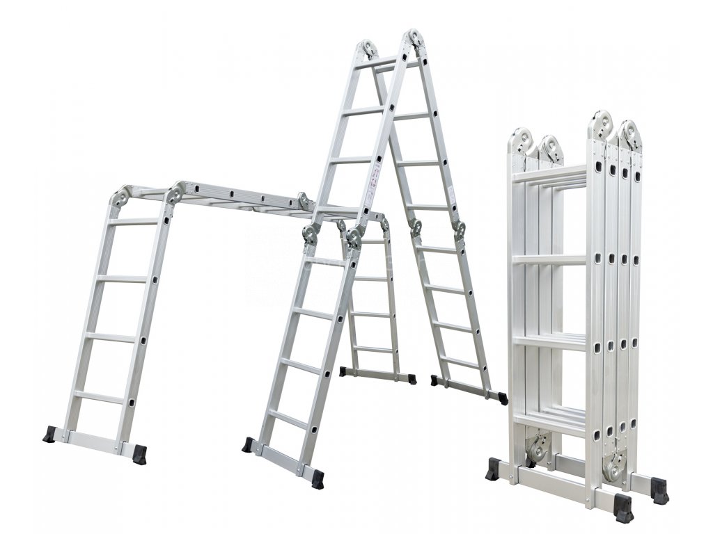 Hliníkové štafle můžete využít jednak jako dlouhý žebřík v délce až 4,6 m. Další variantou je možnost sestavit štafle jako přenosné lešení. Díky konstrukci s klouby lze štafle snadno umístit přes hřeben střechy.