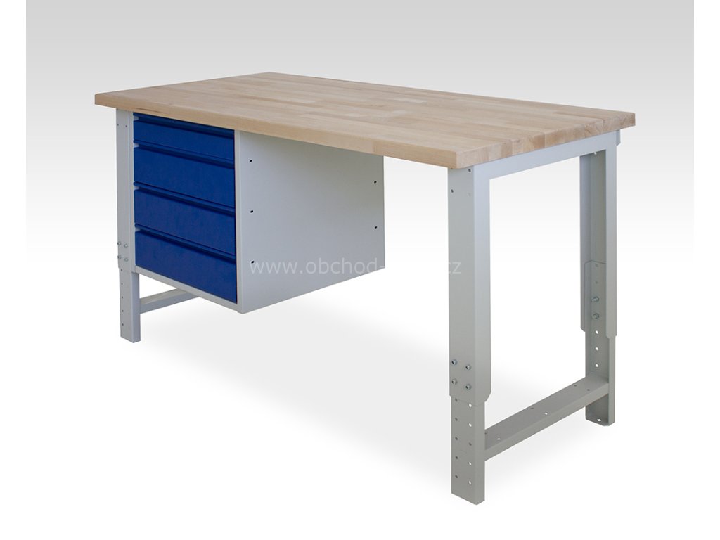 Kontejner s dveřmi a policí určený jako doplněk k dílenským stolům.