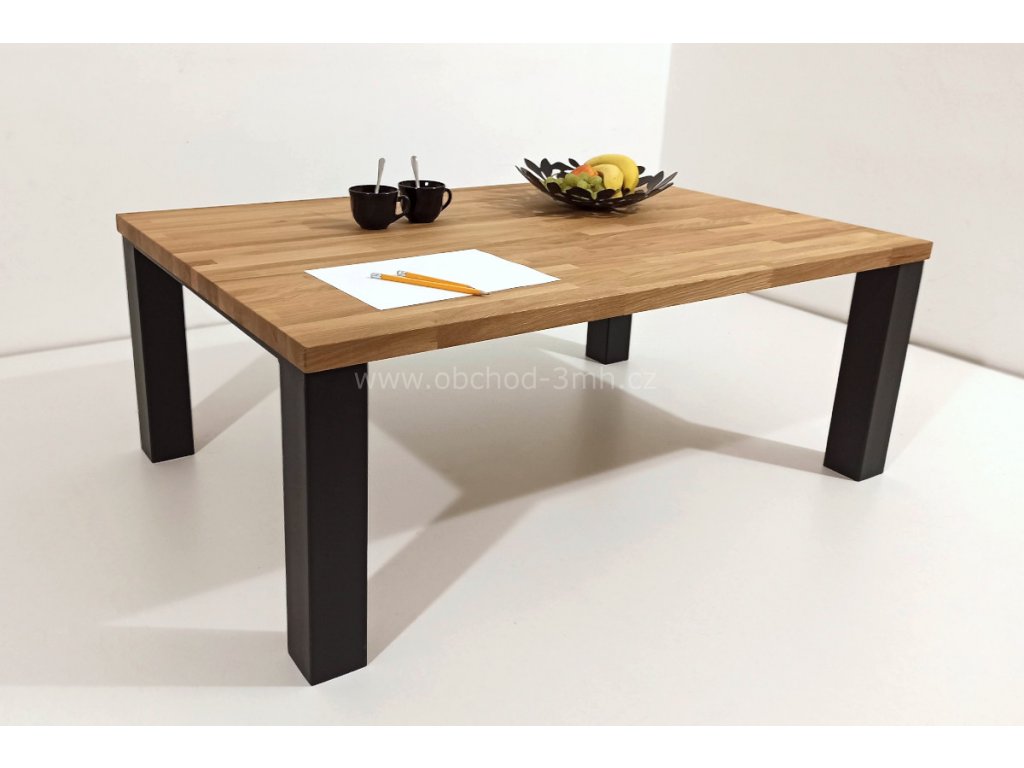 Na fotografii je konferenční stůl o rozměrech 800 x 1200 x 450 mm s masivní dubovou deskou tloušťky 32 mm.
