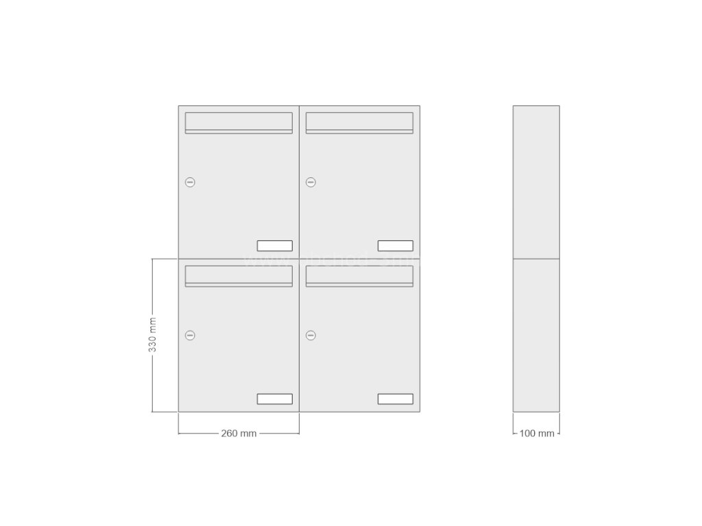 Rozměry jednotlivé schránky (šířka x výška x hloubka): 260 x 330 x 110 mm