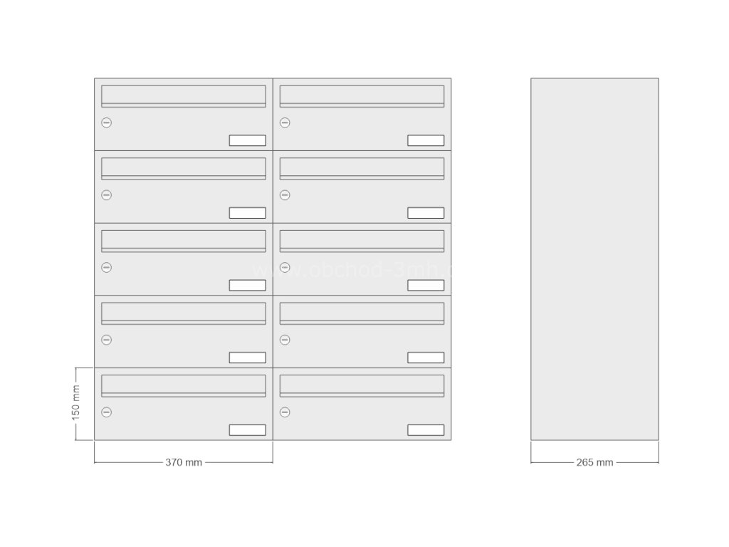 Rozměry jednotlivé schránky (šířka x výška x hloubka): 370 x 150 x 260 mm