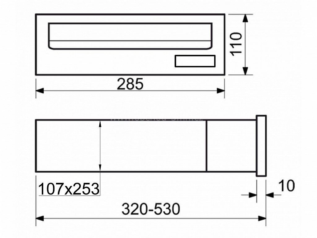 Rozměr čela schránka (šířka x výška): 285×110 mm