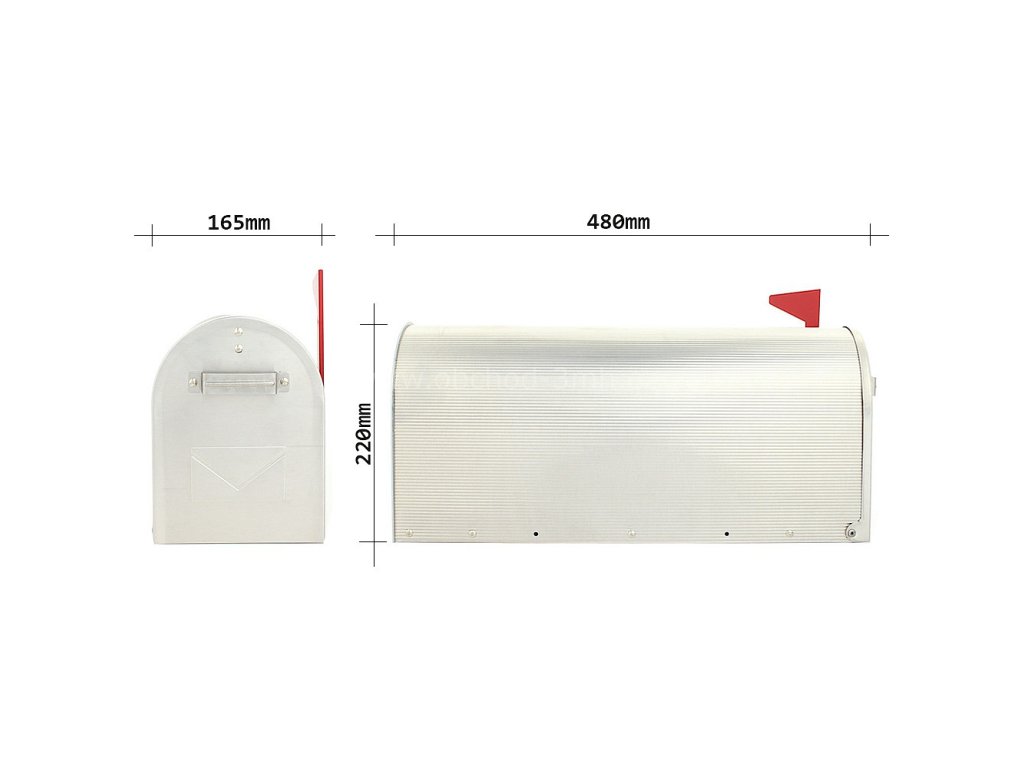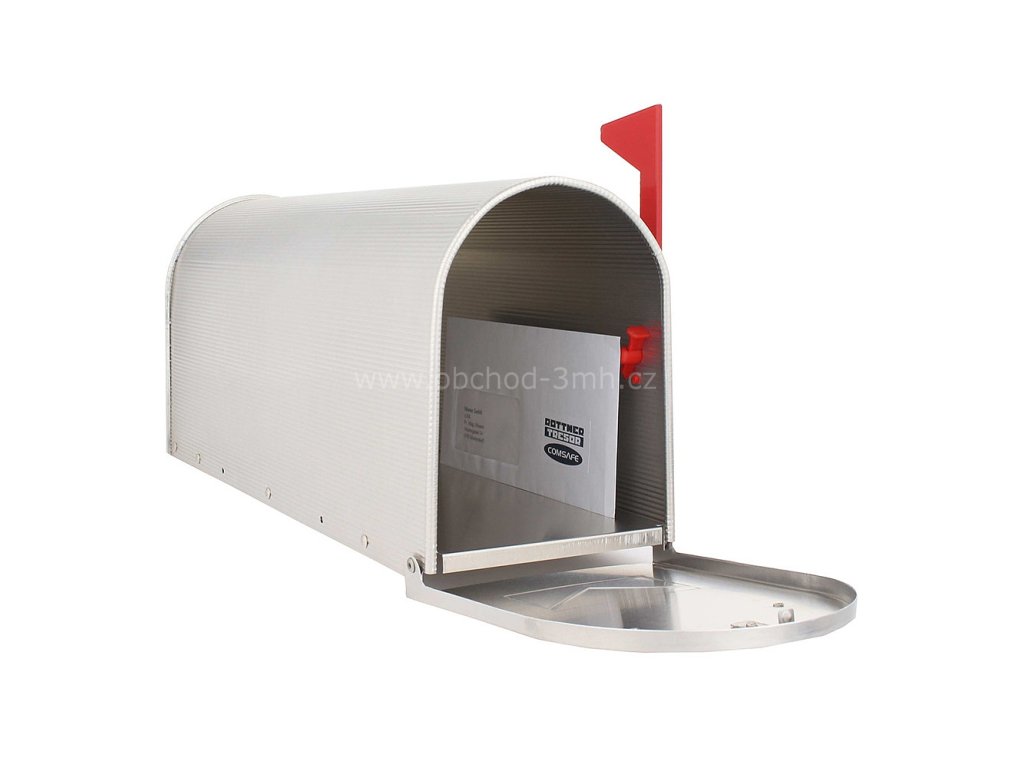 Hliníková poštovní schránka v americkém designu potěší všechny milovníky amerického stylu bydlení. Kvalitní hliník dodává schránce odolnost proti povětrnostním vlivům a rzi. Červený praporek signalizuje plnou schránku a vy tak nemusíte stále kontrolovat, zda už pošta dorazila. Schránka nemá klasický klíčový zámek nebo pouze jednoduchý mechanismus, který zabraňuje otevření předních dvířek. Výhodou tohoto typu schránky je možnost uložit i delší zásilky nebo noviny spolu s klasickou poštou. K schránce je možné dokoupit i černý stojan.