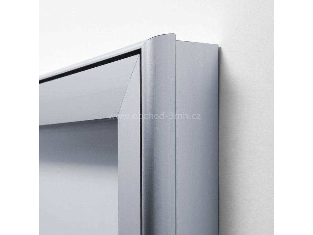 Venkovní robustní extra hluboká vitrína, velikosti 8xA4, se stříbrně eloxovaným rámem. Skleněná výplň čelních dveří je z bezpečnostního skla (4mm), čelní dveře jsou osazeny gumovým těsněním, což zajišťuje její voděodolnost. Venkovní vitrína má silné hliníkové profily a ocelovou lakovanou zadní stěnu, která je popisovatelná a magnetická. Snadnou manipulaci zajišťují horní panty dveří s plynovými otvíracími písty.