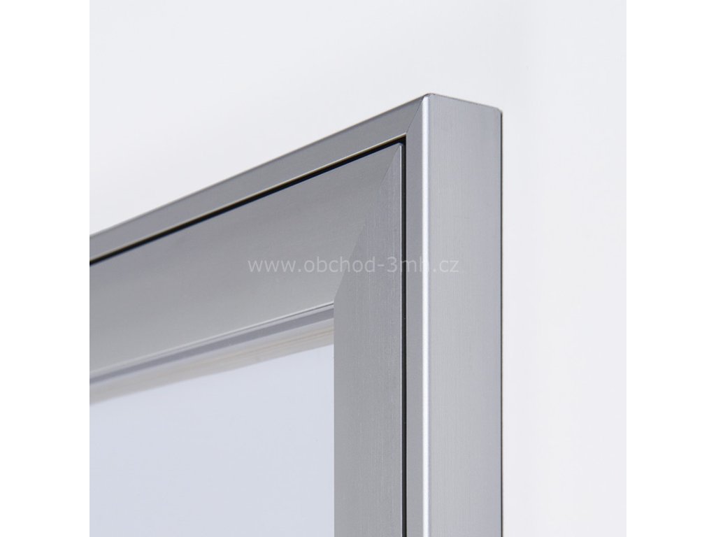 Interiérová vitrína Standard v protipožárním provedení, velikosti 9xA4, se stříbrným rámem. Vnitřní hloubka pro Váš informační materiál činí 13 mm. Přední dveře mají polykarbonátovou výplň. Vitrína je osazena silikonovým těsněním, takže je možné ji použít i venku pod ochranou proti přímému dešti. Interiérová vitrína má kvalitní lakovanou zadní stěnu, která je popisovatelná a magnetická. Vitrína má na straně ochranný zámek.