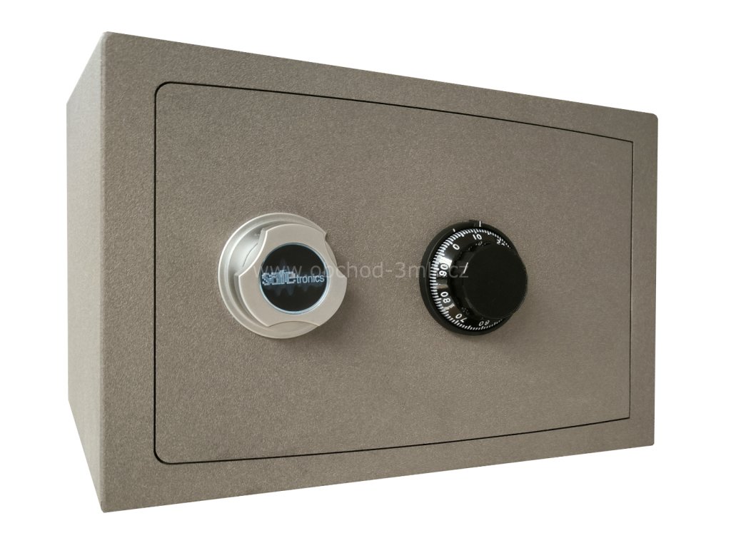 Nábytkový trezor NTR-22 ME, dvouplášťový. Zámek v provedení elektronický zámek, vyjímatelná police. Vnější rozměr: 282x352x257mm (VxŠxH), vnitřní rozměr: 282x352x257mm (VxŠxH).