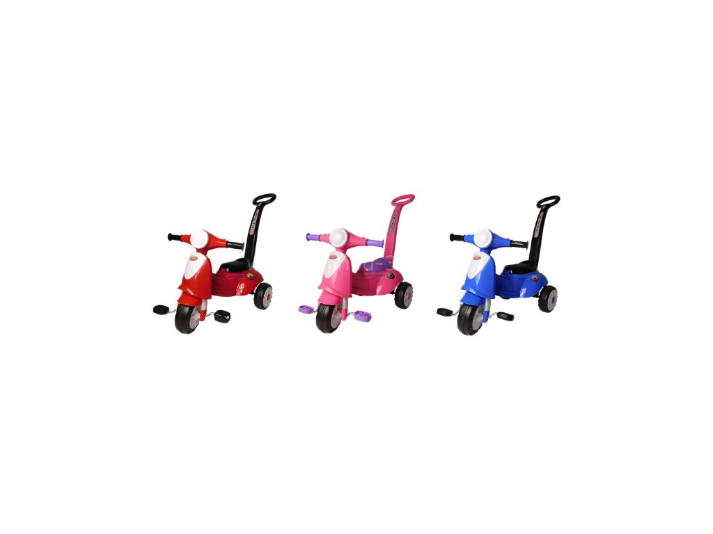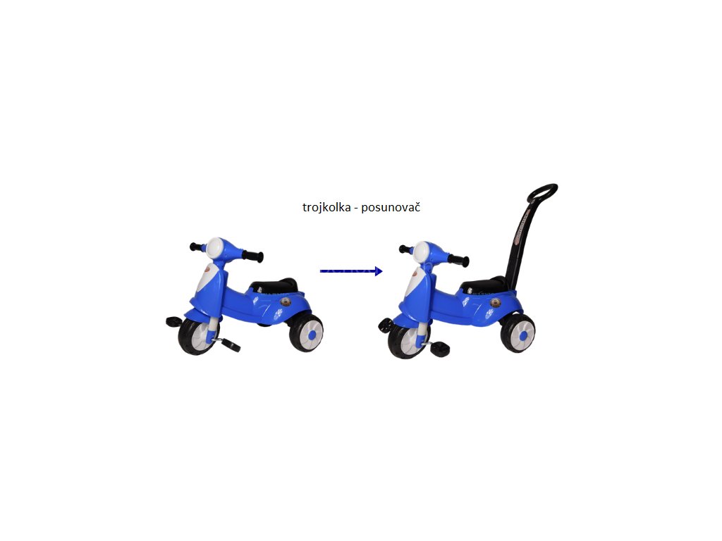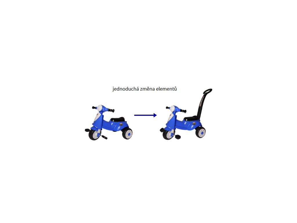 Stabilní trojkolka s odmontovatelnou vodící tyčí pro rodiče.